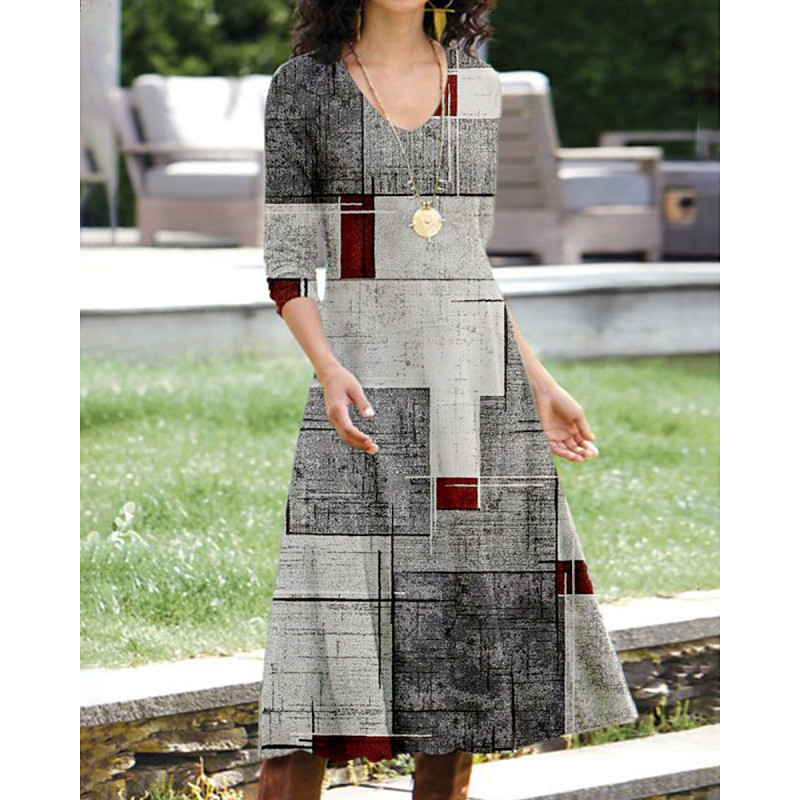 Women's Winter Dress Shift Dress Color Gradient Print V Neck Mini Dress Casual 3/4 Length Sleeve Summer Spring