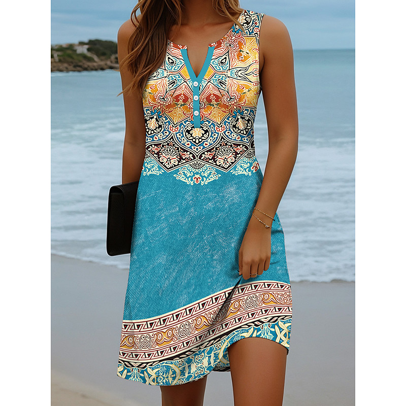Women's Midi Dress Sundress Shift Dress Vacation Casual Boho Party Beach Floral Graphic Sleeveless Crewneck Black Green Blue White Pink Red Summer Spring