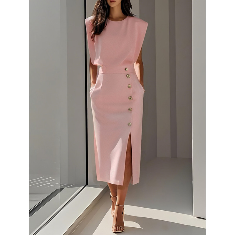 Women's Midi Dress A Line Dress Casual Daily Date Slim Plain Sleeveless Crew Neck Notched Neck Navy Black White Pink Summer Spring