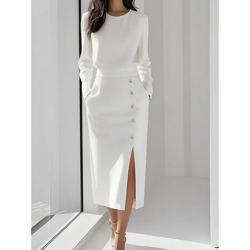 Women's Midi Dress Sheath Dress Semi Formal Office Regular Fit Plain Long Sleeve Crew Neck Black White Pink Spring Fall Winter