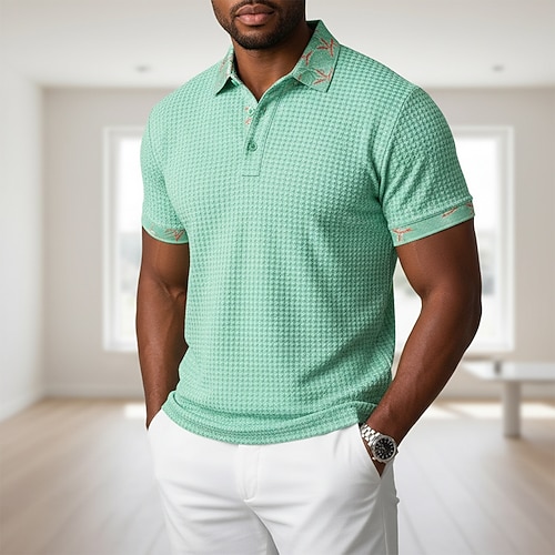 Per uomo Testurizzato Maglia da golf Affari Attivo Classico Manica Corta Moda Moderno Tinta unica Bottoni Estate Primavera Vestibilità regolare Nero Bianco Blu reale Beige Grigio Testurizzato