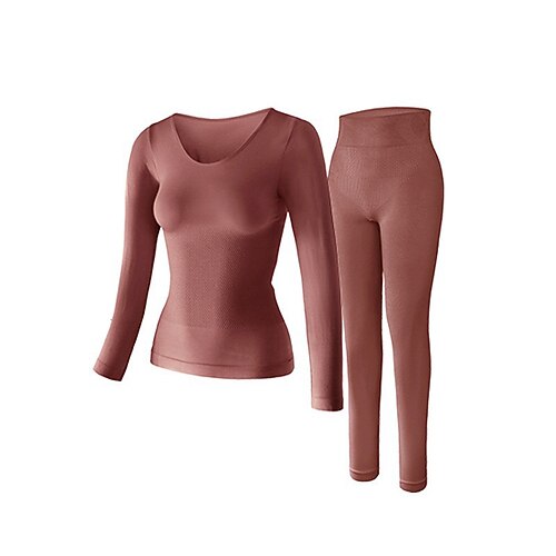 Damen Kompressions-Workout-Baselayer Kaltes Wetter Oben Unten Basisschicht oben und unten Kombination Winter Rot Khaki sportlich Laufen Fitness Hohe Taille Fleece-Futter Weich Langarm Sport