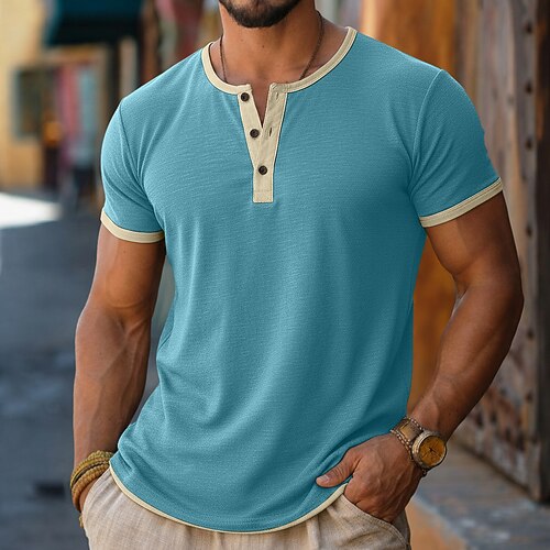 Per uomo Maglietta Maglia Henley Manica Corta Blocco di colori Moda Designer Essenziale Leggero Blocco di colore Henley Casuale Vacanza Streetwear Estate Primavera Nero Rosa Grigio Maglietta Henley