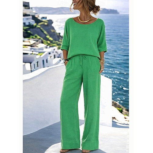 Per donna Set di biancheria in cotone Set di Pantaloni Bolero Top Mezza Manica Girocollo Tinta unica Moda Streetwear Casuale Quotidiano All'aperto Blu Nero Bianco Estate Vestibilità regolare