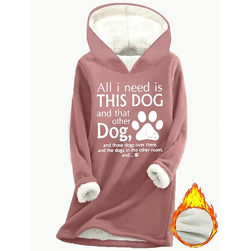 Per donna Felpa con cappuccio Grafico Lettera Caldo Pile Sherpa Manica Lunga Con Cappuccio Top lunghi Streetwear Abbigliamento Quotidiano Casuale Stampato Nero Rosa Grigio Autunno Inverno
