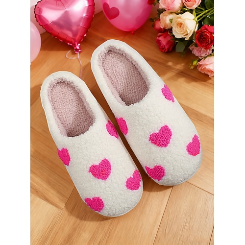 pantofole da casa da donna in pile sherpa bianco con cuori rosa – morbide e calde pantofole da casa per la camera da letto, San Valentino e il relax