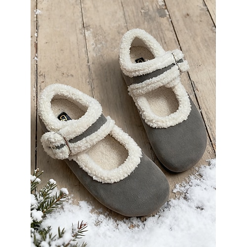 ballerine Mary Jane larghe da donna con cinturino in sherpa color marrone – comode scarpe foderate in pelliccia sintetica per l'inverno, le giornate informali e le feste