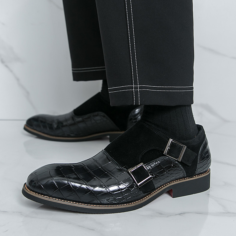 Men's Faux Leather Black Crocodile Print Wedding Shoes – Luxurious Dress Shoes for Grooms and Formal Events