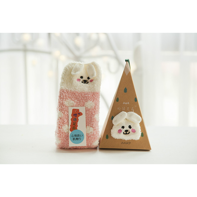 Christmas Women's Slipper Socks, Cartoon Coral Fleece Plush Crew Socks, Mid-Calf Fluffy Floor Socks, Christmas Holiday Cross-Border Edition
