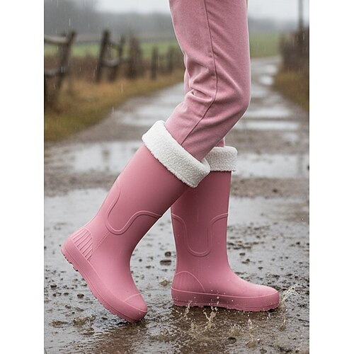 stivali da pioggia impermeabili rossi da donna con polsino in pelliccia sintetica staccabile: calzature resistenti e alla moda per il tempo umido, avventure all'aria aperta e attività in giardino