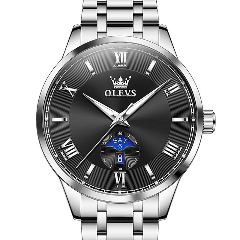 OLEVS Men Quartz Watch Minimalist Fashion Business Wristwatch Calendar Date Week Waterproof Steel Watch