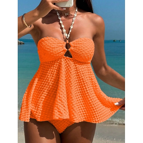 Per donna Costume da bagno Tankini 2 pezzi Tinta unita Gamba corta Asciugatura Rapida Elastico Senza Maniche Costume da Bagno Costume da bagno Surf Spiaggia Nuoto Estate