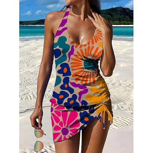 Per donna Costumi da bagno Tankini Gonna Costume da bagno Elegante Vacanza Floreale Grafico Collo a U Senza Maniche Costumi da bagno