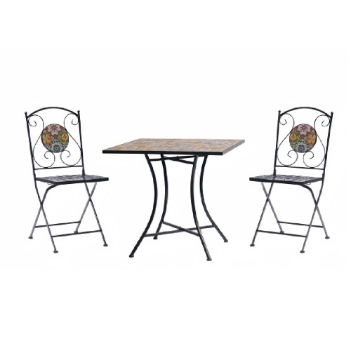 Lex Mosaik Gartenmöbel Set Mosaiktisch quadratisch Mosaikstuhl Balkonstuhl Bunt