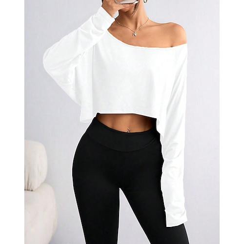 Per donna Maglietta Semplice Elegante Moda Casual Manica Lunga Senza Spalle Top Regolari Quotidiano Uscire Weekend Patchwork Nero Bianco Vino Primavera