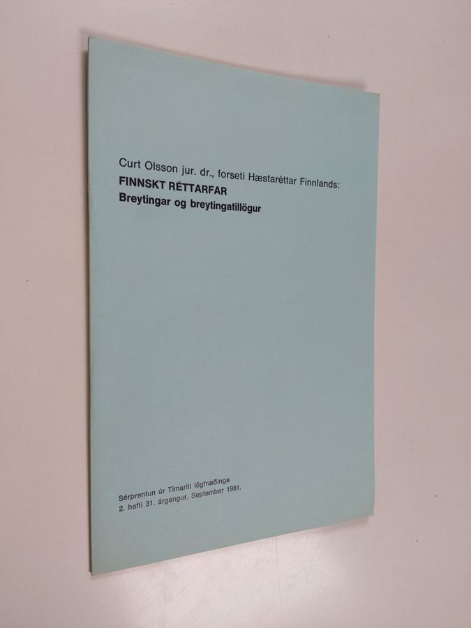 Curt Olsson : Finnskt réttarfar : Breytingar og breytingatillögur (Sérprentun úr Tímariti lögfræðinga 2. hefti 31. árgangur. September 1981)