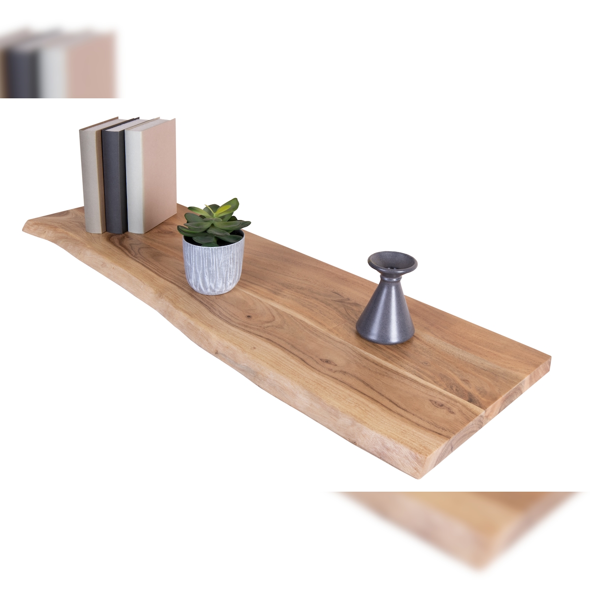 Holzplatte Arya mit echter Baumkante (einseitig), 100 x 30 cm, Akazienholz naturfarben, massiv & lackiert