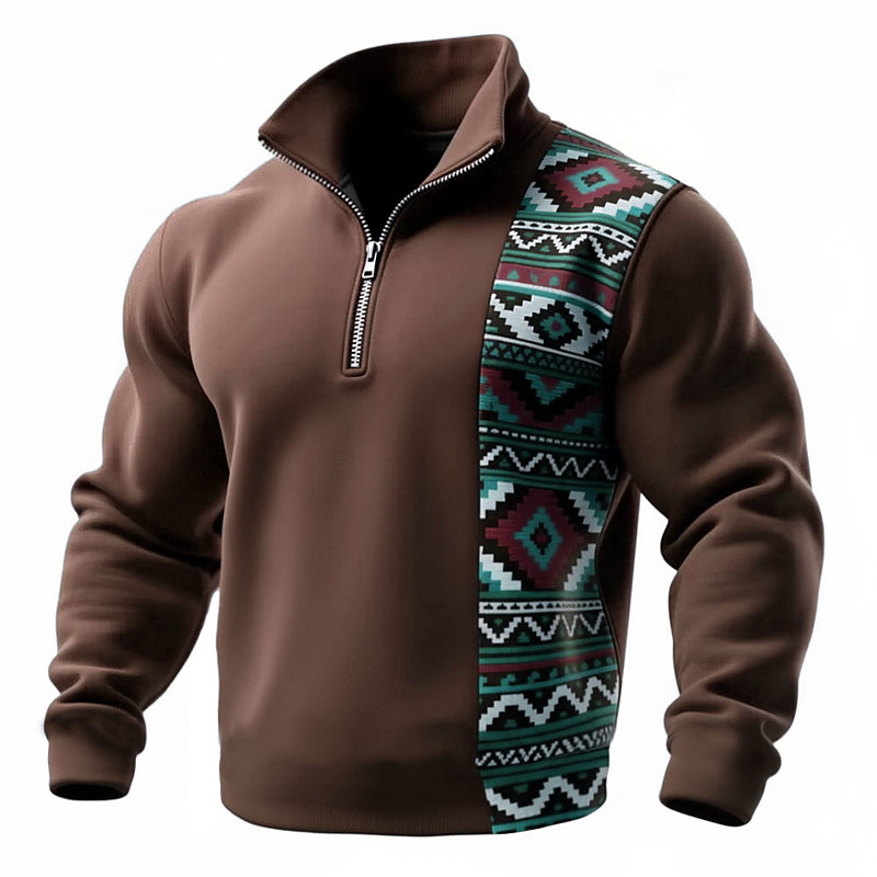 Men's Geometric Plaid Tribal Sweatshirt Sports Fashion Casual Zip Home Streetwear Work Party Blue Lake blue Brown Green Fall All Seasons Designer S M L XL XXL XXXL