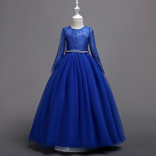 Abito da damigella d'onore bambina Ragazze Abito formale Abiti da sposa Feste Matrimonio Formale Adorabile Principessa Bello Abito per la Prima Comunione Patchwork Rete Tinta unica Manica Lunga