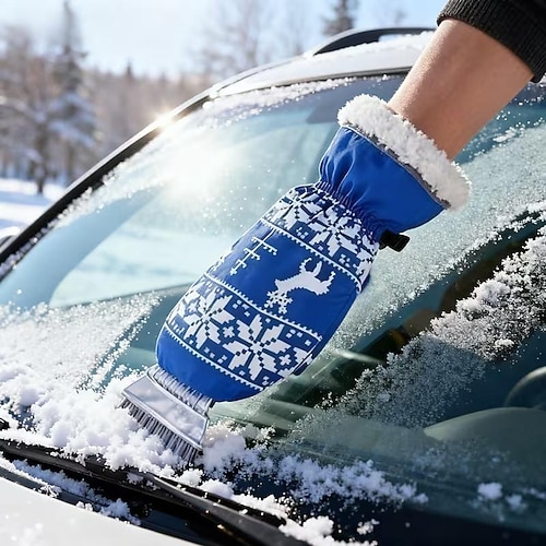 All-in-One Car Winter De-Icer Snow Remover Kit - Heavy-Duty Non- Ice Scraper Warm Gloves Set with Reinforced Grip Handle for Roof - Portable Winter Car Accessories for Drivers (Compatible with M