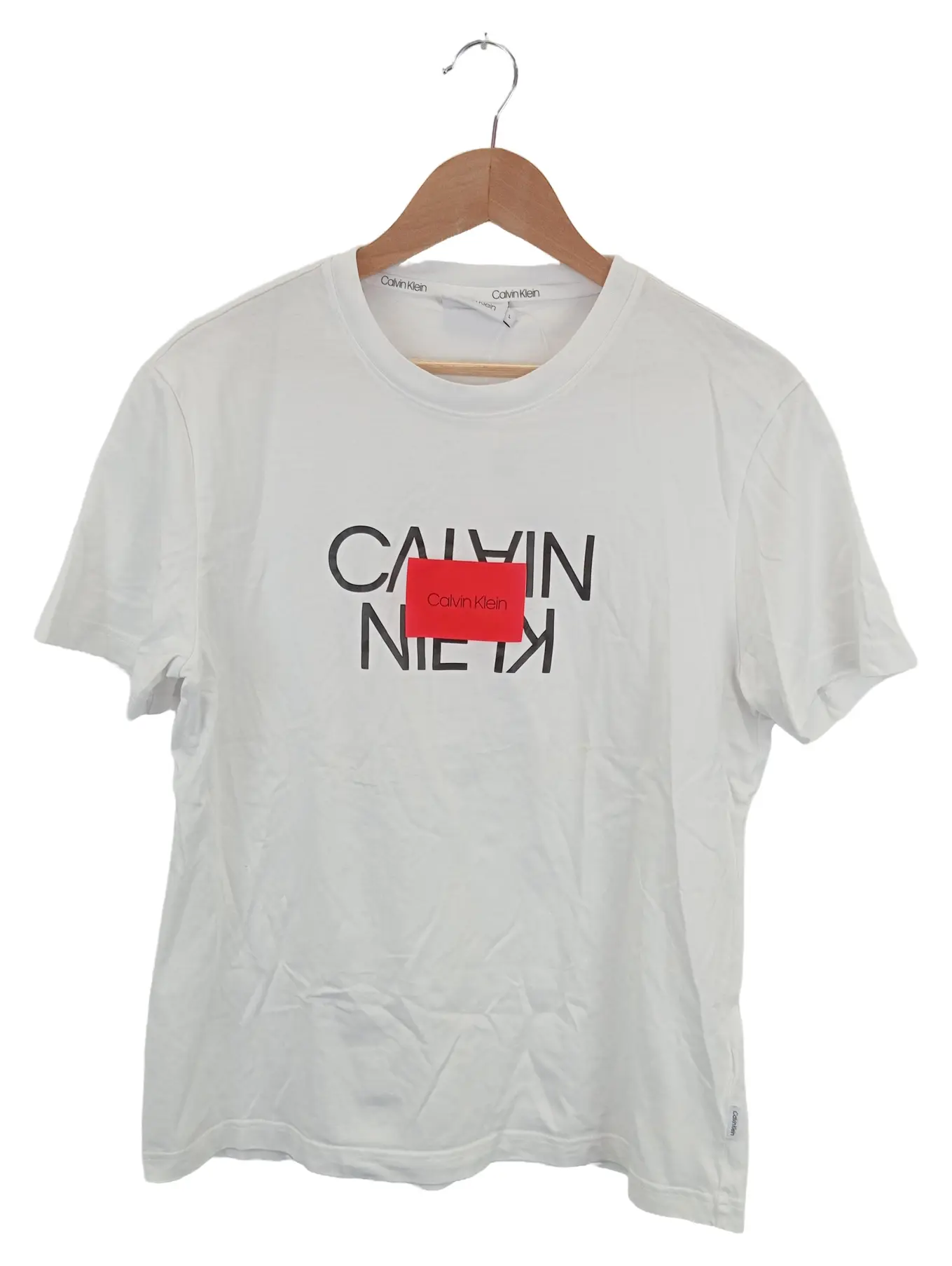 CALVIN KLEIN T-Shirt Weiß Logo Damen L Baumwolle