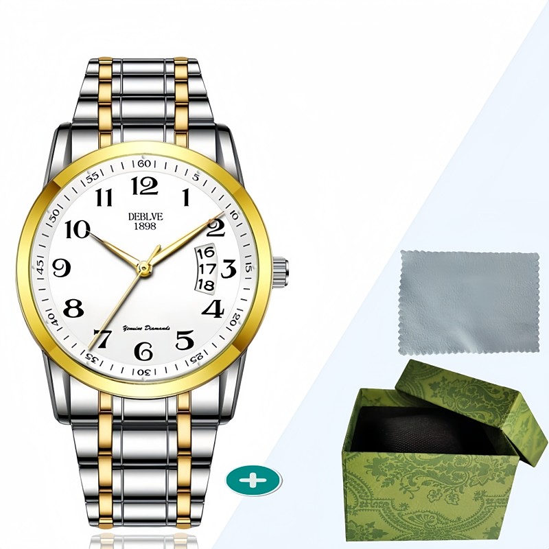 Men's Quartz Watch – Elegant Business Style, Luminous Hands, IPX7 Waterproof, Dual Calendar with Date Day Display, Alloy Strap, Fashion Gift for Office or Sports