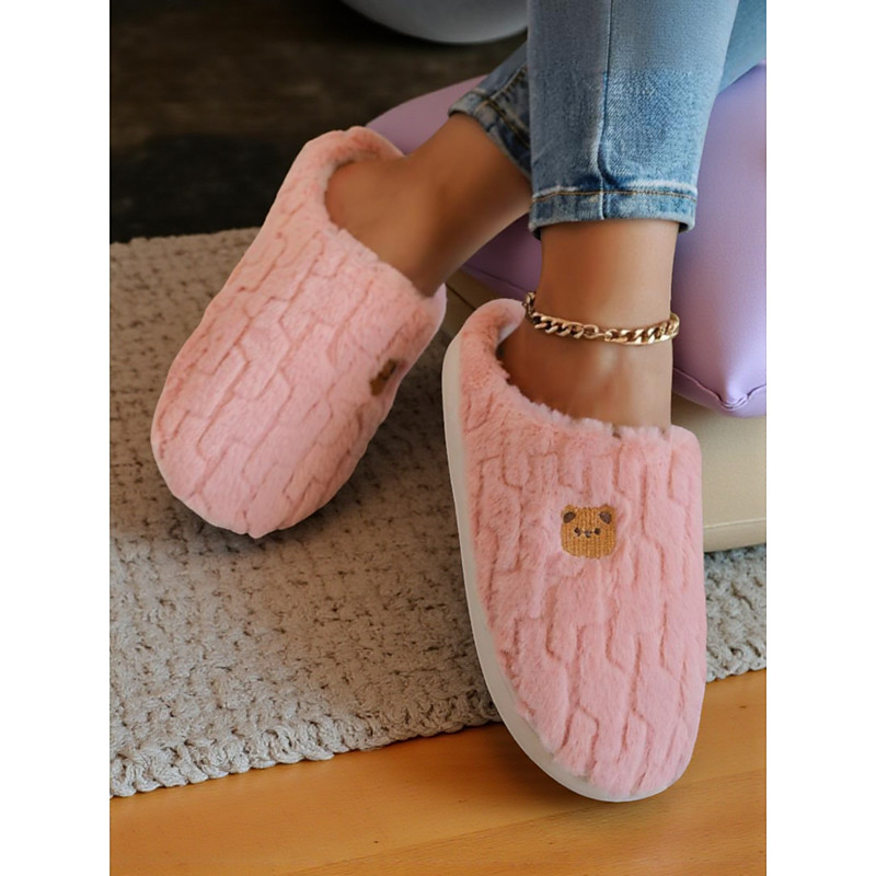 Women's Plush Cartoon Slippers with Bear Embroidered – Soft Cozy Indoor Shoes for Bedroom and Winter Home Use