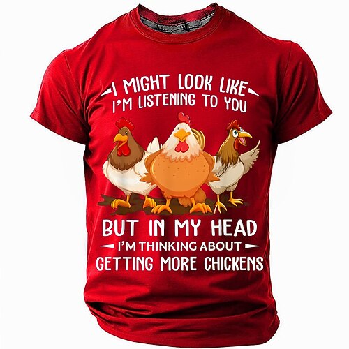 T-Shirt Divertente da Uomo Grafica Gallina a Maniche Corte - 'Pensando A Più Galline' Regalo Per Amanti Degli Hobby