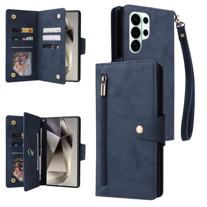 Samsung Galaxy S26 Ultra Plånboksfodral Konstläder Med Ställning - Blå