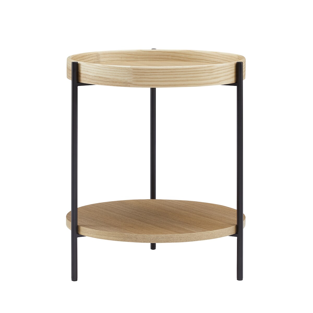 SalesFever Beistelltisch Ø 44 cm | rund | mit 2 Ablageflächen | MDF mit Eschenholzfurnier| Metallgestell | B 44 x T 44 x H 49 cm | Natur – Schwarz