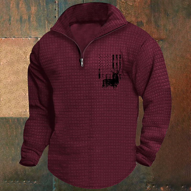 Men's Sweatshirt Waffle Sweatshirt Quarter Zip Sweatshirt White Wine Army Green Khaki Light Grey Half Zip Graphic Print Print Quarter Zip Christmas Daily Holiday Other Prints Polyester Streetwear