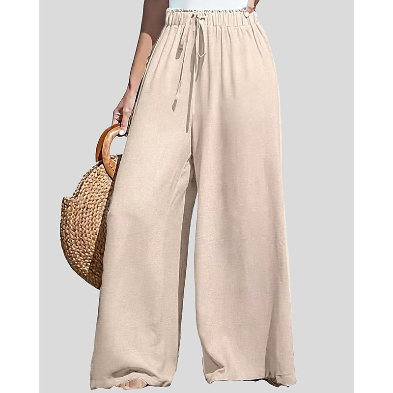 Women's Cotton Linen Pants Wide Leg Chinos Vacation Streetwear Casual Full Length Medium Waist Plain Drawstring Pocket Breathable Micro-elastic Daily Outdoor Street Grey Black Army Green Dark navy