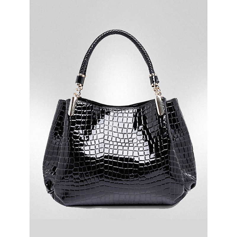 Women's Christmas Croc-Embossed Faux Leather Handbag, Holiday-Ready, Available in Red, Blue, and Black – Stylish Winter Shoulder Bag with Adjustable Strap and Gold Accents