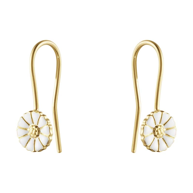 Georg Jensen - Daisy Mini Krokörhänge Guldpläterat Silver med Vit Emalj
