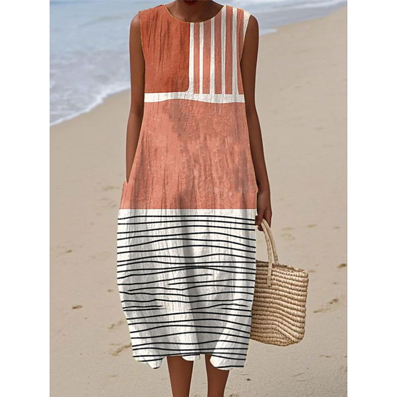 Women's Midi Dress Sundress Vacation Casual Boho Holiday Summer Dress Spring Dress Loose Fit Plain Sleeveless Crew Neck Blue Yellow Red Light Brown Summer Spring