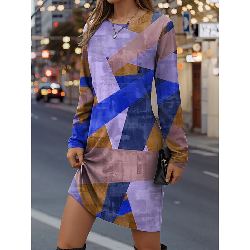 Women's Mini Dress Sweatshirt Dress Casual Dress Winter Dress Sheath Dress Elegant Vintage Daily Outdoor Vacation Regular Fit Graphic Geometric Long Sleeve Crew Neck Blue Navy Blue Purple Spring Fall