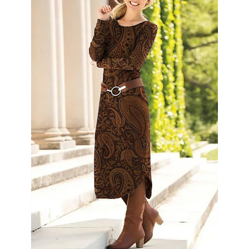 Women's Midi Dress Shift Dress Casual Daily Loose Fit Graphic Abstract Long Sleeve Square Neck Red Blue Purple Green Spring Fall Winter