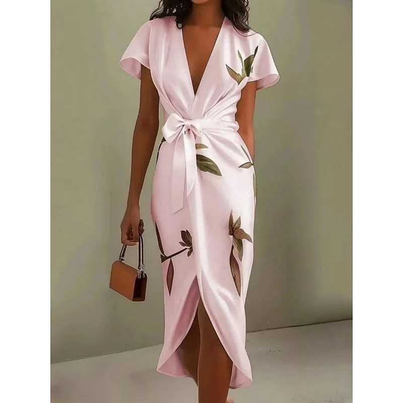 Women's Casual Dress Floral Color Block Ruched Print V Neck Midi Dress Sexy Casual Daily Short Sleeve Summer Spring