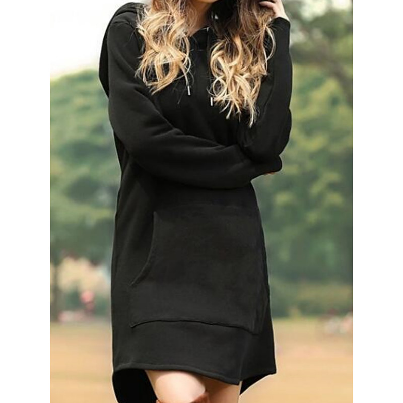 Women's Mini Dress Hoodie Dress Casual Dress Fashion Modern Daily Office Vacation Loose Fit Plain Long Sleeve Hooded Black Yellow Red Purple Spring Fall Winter