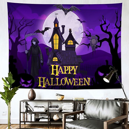 Arazzo Appeso Casa Horror di Halloween Grande Arazzo Murale Decorazione Fotografia Fondale Coperta Tenda Casa Camera da letto Soggiorno Decorazione