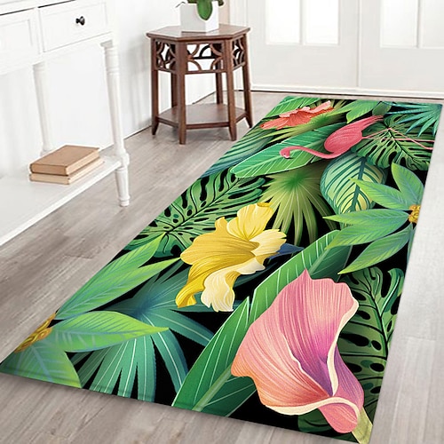 Flurläufer mit Pflanzen-, Blumen-, Tier- und Flamingo-Mustern, Flanellstoff, bedruckt, rutschfest, weich, für die Fußmatte, Eingangsbereich, Badezimmerboden