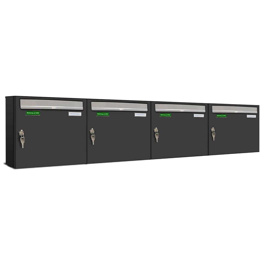 AL Briefkastensysteme 4 x Basic Wand Briefkasten in RAL 7016 Anthrazit Grau für Post A4, wetterfest, Artikelnummer: 431P4EA4P7016/9006