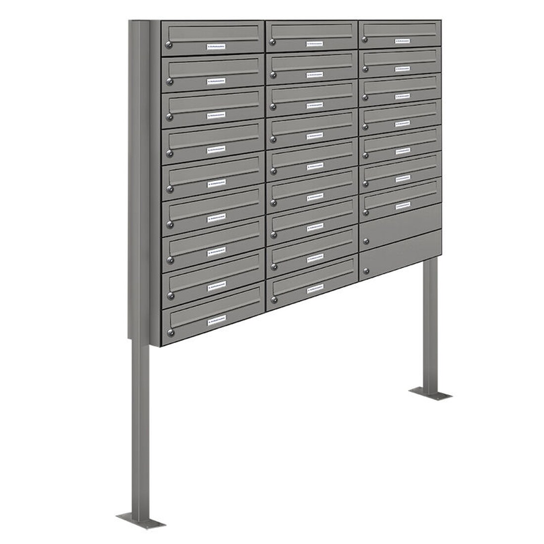 AL Briefkastensysteme 25 Fächer Premium Stand Briefkasten Anlage in RAL 9007 Aluminium Grau, Post A4, robust, wetterfest, Artikelnummer: 132P25S3P9007
