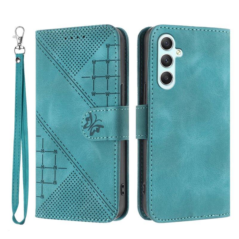 Samsung Galaxy A35 5G Fodral Äkta Läder Fjäril Blomma - Ljusblå