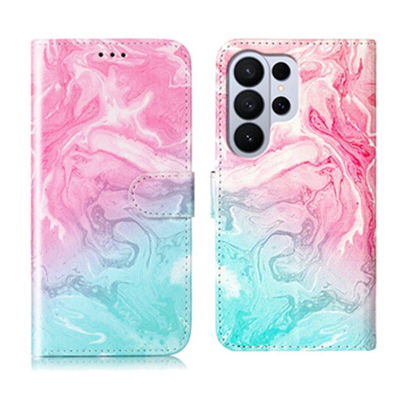 Plånboksfodral för Samsung Galaxy S26 Ultra Ställfunktion Konstläder Marmor Rosa