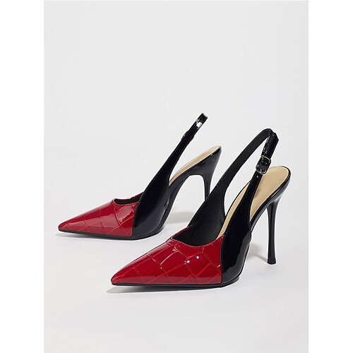 scarpe con tacco slingback in similpelle verniciata rossa e nera da donna – design chic con punta affilata per abbigliamento da ufficio e business