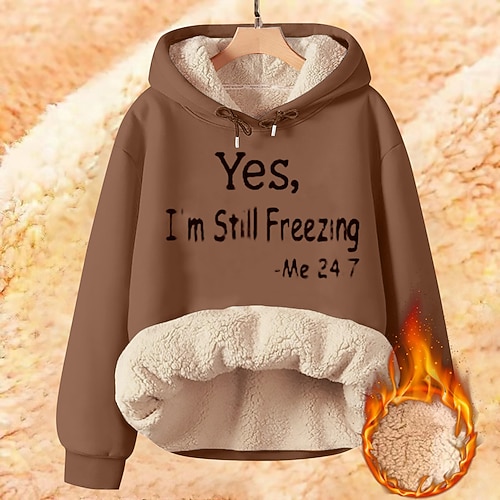 Per donna Felpa con cappuccio Grafico Lettera Caldo Casual Pile Sherpa Manica Lunga Con Cappuccio Top lunghi Streetwear Abbigliamento Quotidiano Casuale Stampato Rosa scuro Blu Grigio Autunno Inverno