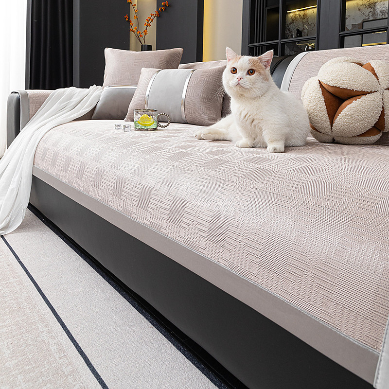 Summer Ice Silk Couch Cover for Pets, Pet Friendly Cooling Sofa Cushion and Throw Blanket, Soft Skin-Friendly Non-Slip Sofa Protector, Luxury Minimalist Slipcover for Living Room