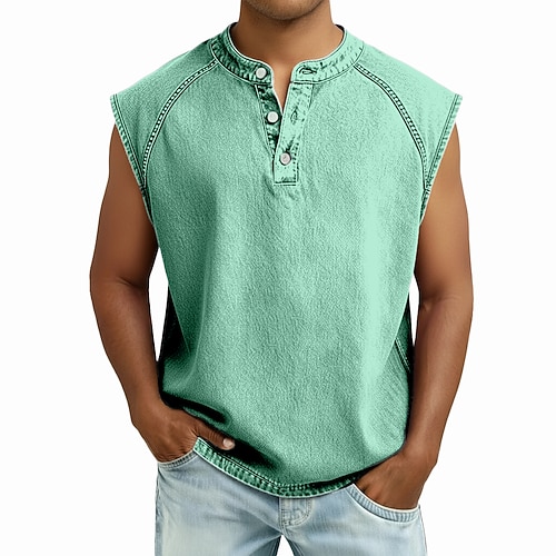 Herren Tank Top Henley Hemd Weste Ärmelloses Shirt Ärmellos Henley Sommer Einfach Mode Designer Muskel Vintage-Stil Knöpfe Lässig Täglich Streetwear Schwarz Hellgrün Rosa Top T-Shirt für Herren
