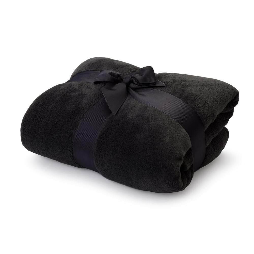 Lumaland TV Kuscheldecke mit Ärmeln aus weichem Coral Fleece mit Handytasche + Fußtasche - 150 x 180 + 35 cm - schwarz